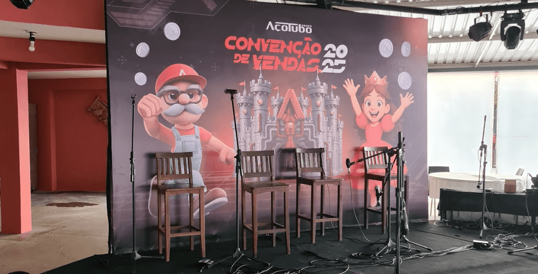 A Convenção de Vendas anual do Grupo Açotubo precisava ir além de uma simples reunião de resultados para se tornar um motor de engajamento para centenas de colaboradores e representantes nacionais. O desafio era comunicar o tema "Excelência junto ao cliente" de forma que a cultura organizacional interna fosse percebida como um diferencial competitivo. A barreira era transformar dados técnicos e metas estratégicas em uma linguagem dinâmica, capaz de fortalecer a sinergia entre as áreas comercial, financeira e de suporte.