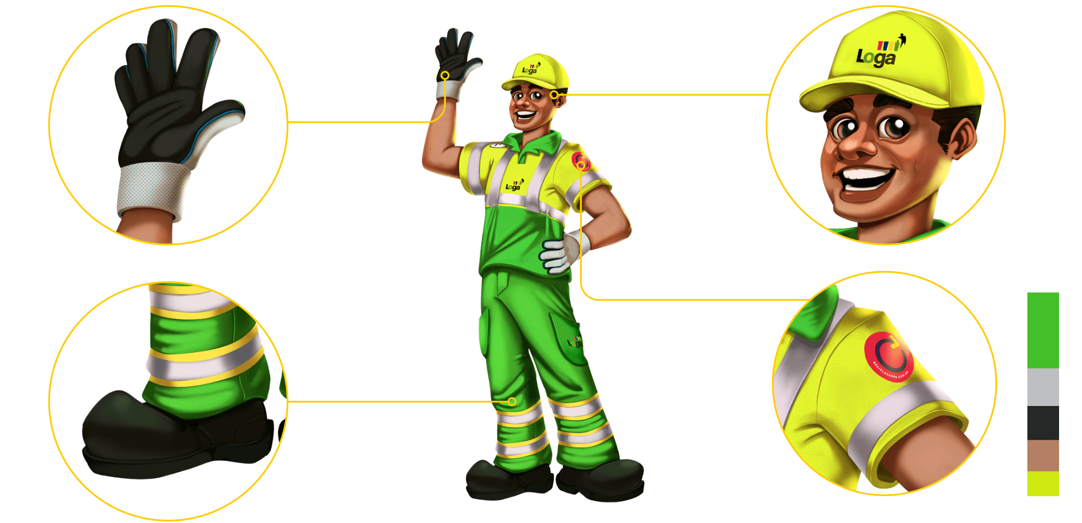 Personificamos a tecnologia na figura do Leco, um personagem desenvolvido com acabamento assemelhado a 3D que representa o coletor de resíduos — o elo de maior identificação entre a empresa e a vizinhança. O nome Leco foi estrategicamente derivado da palavra Ecologia em conjunto com a inicial da marca, reforçando a missão de conscientização ambiental e sustentabilidade. Com traços adultos e utilizando EPIs, o personagem foi construído com versatilidade para atuar tanto na coleta domiciliar quanto na de serviços de saúde, humanizando o atendimento digital através de uma persona experiente, protetora e especialista. A criação do Leco transformou o chatbot da Loga em uma extensão da cultura da empresa, unindo inovação tecnológica ao carisma do trabalhador brasileiro.
